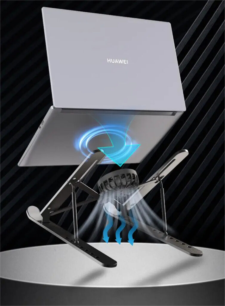 Don’t let its sleek, foldable design fool you – our Laptop Stand with Fan is built to endure. Crafted from high-quality, strong materials, this stand offers unmatched stability and support for your laptop, even during long hours of use. Whether you’re working from home, a café, or on the go, rest assured that this stand can handle it all without compromising its performance or your laptop’s safety.